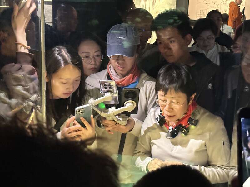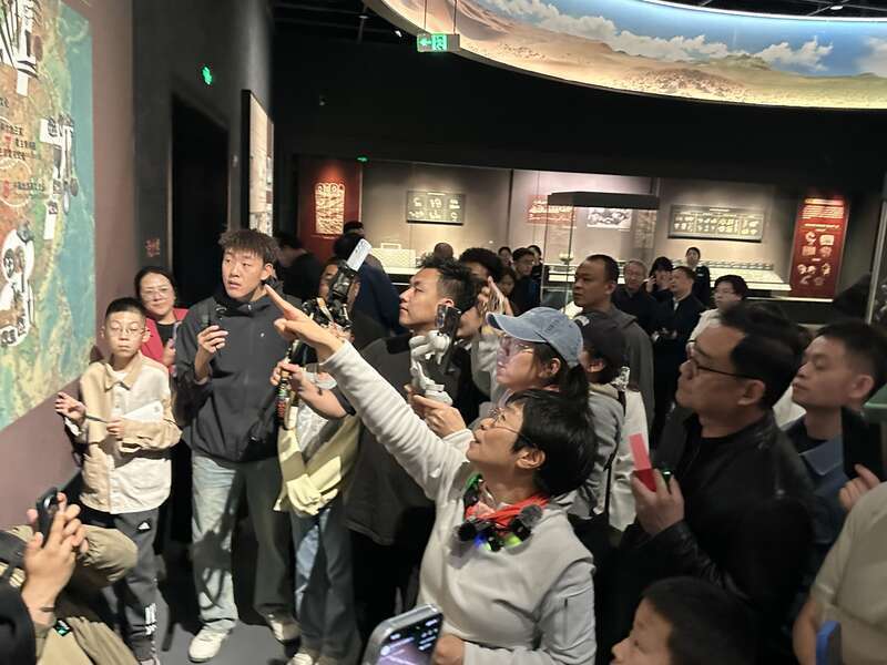 在鄂尔多斯市博物院电子屏上滚动显示着“曼行内蒙古”,4月30日至5月3日,蒙曼去到内蒙古呼和浩特市、包头市、鄂尔多斯市等地游览,并在短视频平台分享自己的行程。中青报·中青网记者看到蒙曼在参观鄂尔多斯市博物院时,有不少青少年跟着听讲解,蒙曼还向身边的游客推荐,“(鄂尔多斯)这个地方的宝贝挖也挖不尽,来看看,一定要来看一看。”